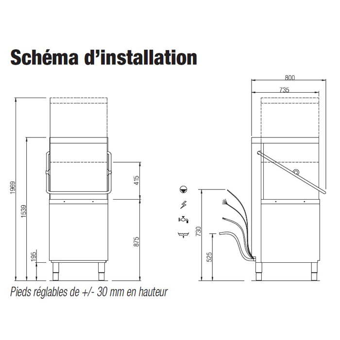 - Alimentation: Eau Chaude (70°C)