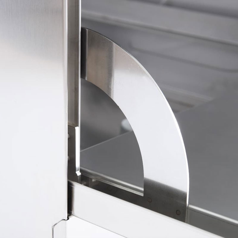 Pesant 60 kg, ce lave-vaisselle est robuste et stable. Il est livré avec deux casiers de 500 x 500 mm, chacun équipé d'un insert pour couverts, offrant une grande capacité de chargement.