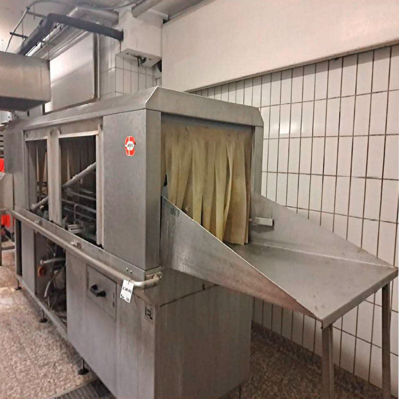 Tunnel de lavage Jeros KAS 600 – Occasion – machine industrielle inox pour paniers, plaques et bacs de boulangerie