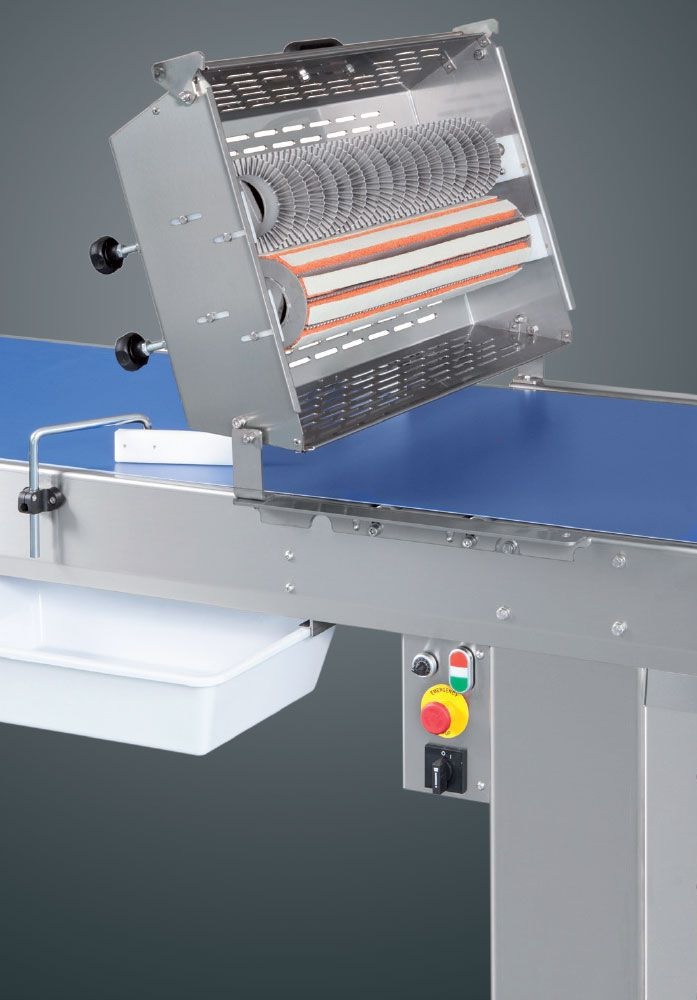 -Rouleau de sortie relevable pour le déclenchement du tapis et pour le nettoyage de la table