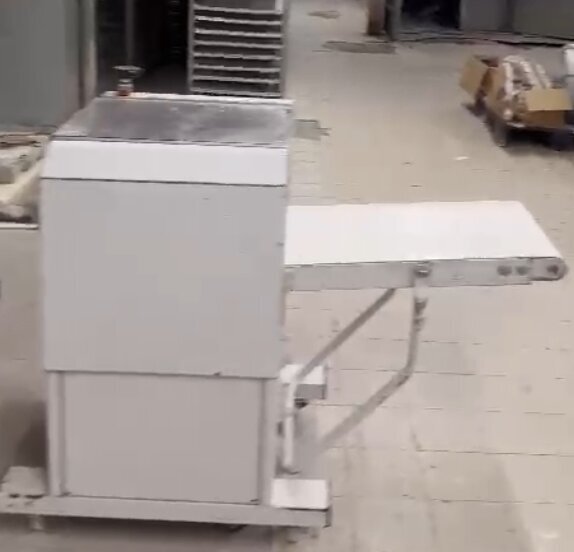 Année de fabrication: 2006 Le CONVOYEUR peut transporter de la pate feuilletée, levée ou brisée. Dans sa version standard il est construit en acier inox; il soutient un tapis mu par un motoréducteur, dont la vitesse peut etre sélectionnée par l'utilisateur. Pendant le laminage, le CONVOYEUR transporte la pate d'un groupe à l'autre (ex. du multi-rouleau au groupe presse-pate, etc.); il y a aussi la possibilité de monter des groupes supplémentaires (ex. une guillotine pour le découpage transversal, un groupe de découpage longitudinal, un tapis pour récupérer les rognures, des farineuses, etc.). Un racleur extérieur avec sa petite cuve est positionné à la sortie du convoyeur. Longueur de la machine mm : variable selon les exigences du client Largeur du tapis mm: variable selon les exigences du client Largeur utile mm: variable selon les exigences du client Vitesse m/min: 1+8 (avec variateurs électroniques) Puissance installée: 0,75 kw Fréquence: 50/60 Hz Phases: 4/5 ph Volt: 220/380/415 v Construction: inox + aluminium