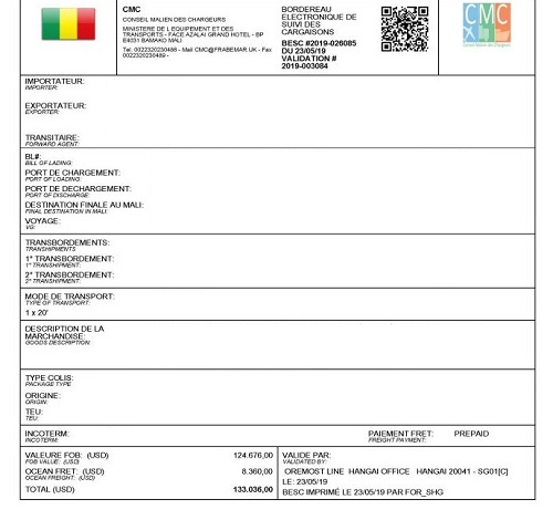 Couvre les besoins statistiques, de la valeur de la marchandise, d'identification, de contrôle des couts de transports, de sureté et de la traçabilité du commerce et du trafic des marchandises en provenance .