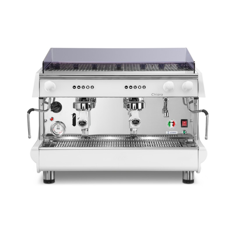 La ROYAL CHIARA GIESSE 2G-53 est une machine à café électronique professionnelle conçue pour offrir une extraction de qualité supérieure avec une grande simplicité d'utilisation. Équipée de groupes thermo-compensés traditionnels de 4,4 kg (Ø53 mm) et d’un clavier tactile programmable, elle associe élégance, efficacité et maîtrise technique, parfaite pour les établissements exigeants en matière de café.