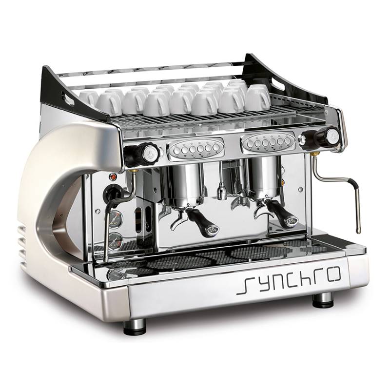La machine à café ROYAL SYNCHRO RS 2G est un modèle électronique à clavier programmable, conçu pour les établissements CHR qui recherchent fiabilité, efficacité et qualité d’extraction constante. Avec ses deux groupes indépendants, sa chaudière de 11 litres et ses trois porte-filtres, elle répond parfaitement aux exigences des cafés, bars et restaurants à fort débit.