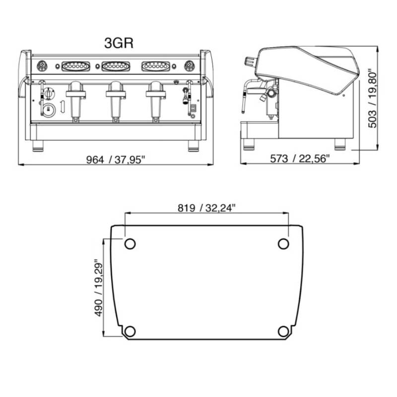 Caractéristiques techniques de la machine à café ROYAL TECNICA 2.0 Electronic 3GR