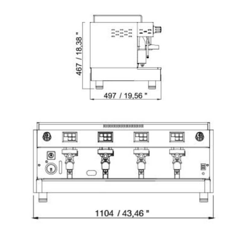 Avec ses 4 groupes thermo-compensés traditionnels de 4,4 kg chacun et sa chaudière massive de 27 litres, cette machine assure une disponibilité constante en eau chaude et vapeur. Sa puissance de 5500 W garantit une réactivité optimale, même lors d’un usage intensif en continu.