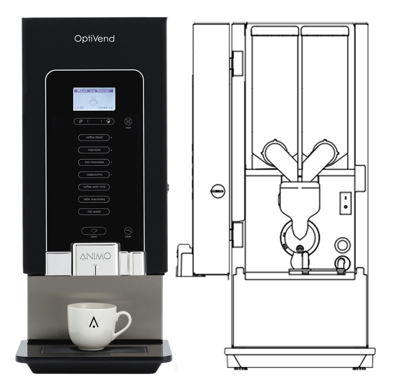 -Il vous suffit d’appuyer sur une touche pour choisir votre café préféré, et en quelques secondes votre boisson est prête ! -OptiVend Next Generation est puissant à l’intérieur et beau à l’extérieur.