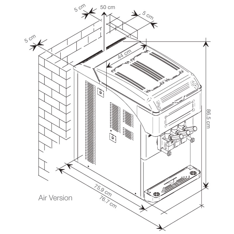 - Son système de condensation à air avec cheminée arrière optimise l’espace d’installation, permettant de placer plusieurs machines côte à côte sans réduire leur performance.