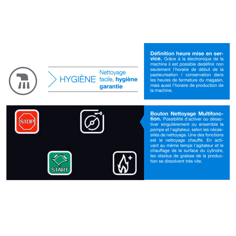 - Autopasteurisation jusqu’à 42 jours, limitant le nettoyage et garantissant une hygiène irréprochable.