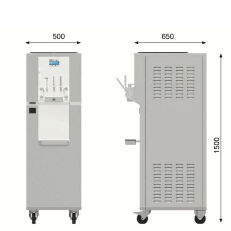 De plus, elle est équipée de pompes à engrenages pour un mélange homogène, garantissant une consistance parfaite pour chaque portion. L’écran intégré permet un contrôle facile et précis des différentes fonctions de la machine, telles que le mixage, la distribution, le stockage et le lavage. Il affiche également la viscosité de la crème ainsi que le nombre de cônes produits, pour une gestion optimale de la production. Sa condensation par air et son système de chargement automatique du mélange dans les cylindres facilitent encore son utilisation au quotidien.