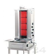 - Mécanisme de la broche en bas - Elément réflecteur en céramique (180 x 700 mm) - Thermostat de sécurité - Régulation de la température - 4 corps de chauffe - Bac de récupération des graisses - Avec pelle (Ø : 300 mm) - Avec 2 prises électriques - Poids max. de la viande : env. 50 kg - Hauteur max. de la viande : 630 mm - Rotation broche : 1 tour / min. - Puissance 1 corps de chauffe : 1,9 kW - Puissance : 7,6 kW - Alimentation électrique : 400 v / 3N / 50 Hz - Dimensions (lxlxh) : 620 x 760 x 1040 mm