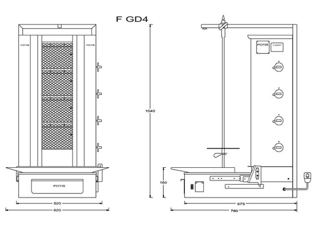 Machine à kebab Gyros 4 feux Gaz POTIS