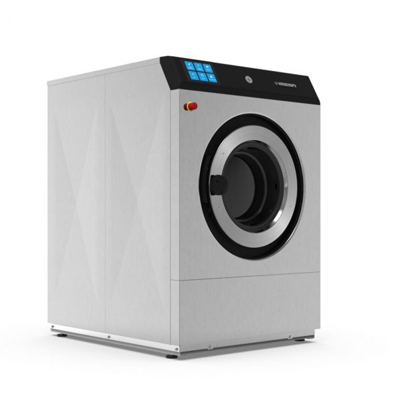 Avec un tambour de 181 litres (dimensions 700 x 470 mm), cette machine à laver 18 kg offre une capacité idéale pour le linge quotidien d’un atelier ou d’une unité de production. Sa vitesse de rotation élevée de 915 r.p.m. et son facteur G de 327 assurent une extraction d’eau efficace, optimisant le temps de séchage et la productivité globale.
