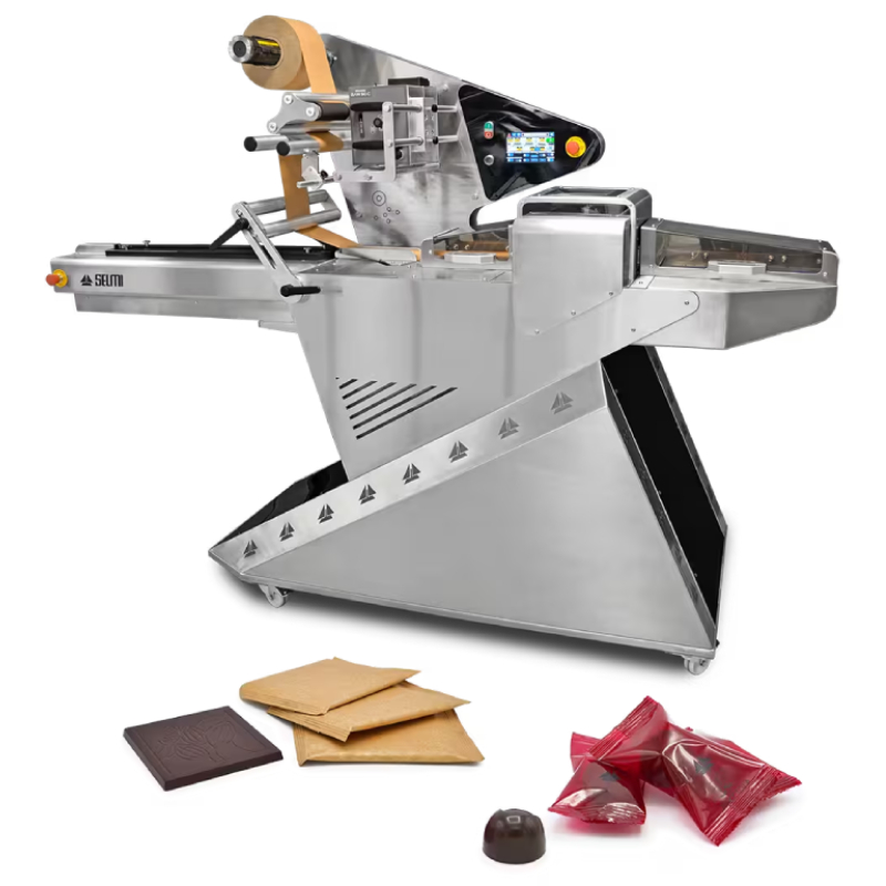 La SELMI WRAP 400 PLUS est une machine d'emballage flow pack de pointe, conçue pour offrir des performances supérieures dans l'industrie alimentaire. Ce système avancé assure un emballage rapide, précis et hygiénique, idéal pour une large gamme de produits alimentaires, en particulier les confiseries et les chocolats.