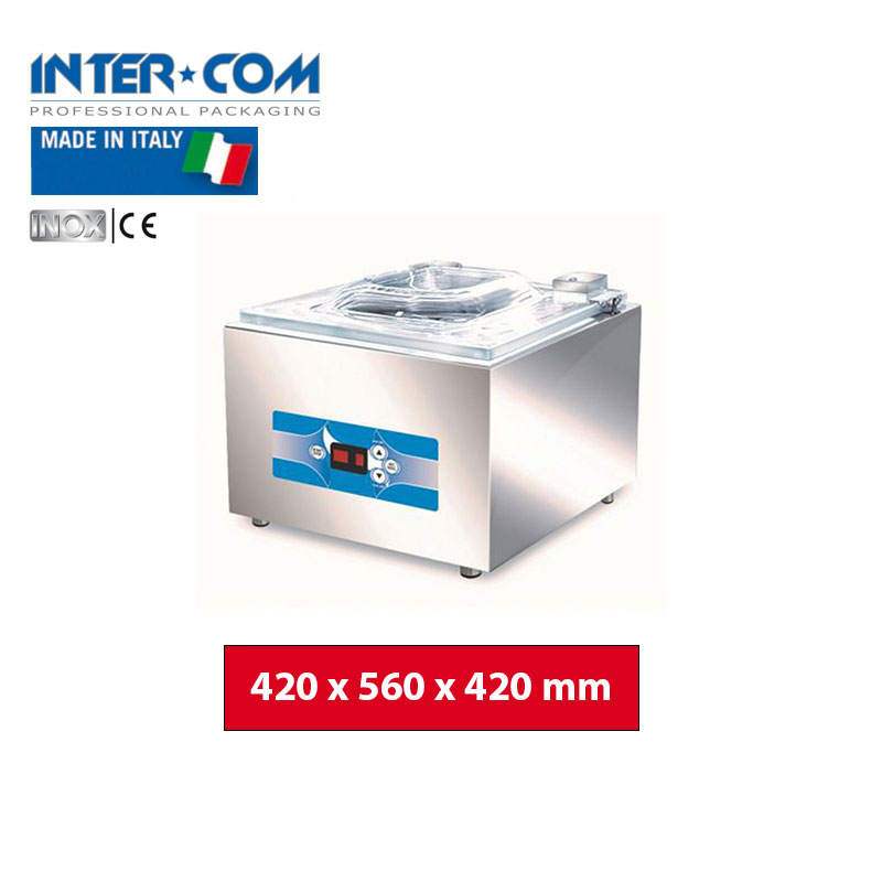 Cette machine de table est caractérisée par une chambre en acier inoxydable sans coins, garantissant une durabilité exceptionnelle et une hygiène optimale grâce à un nettoyage facile.
