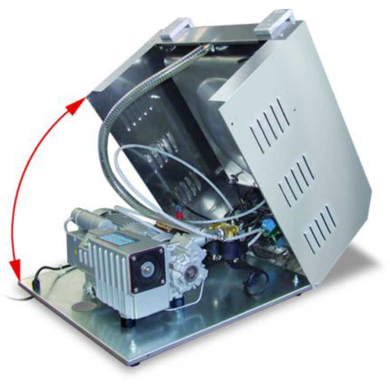 À la fin du cycle, la cloche s'ouvre automatiquement, accélérant le processus d'emballage. Le programme d'auto-nettoyage de la pompe assure un entretien régulier sans intervention manuelle, maintenant les performances optimales et prolongeant la durée de vie de la pompe.