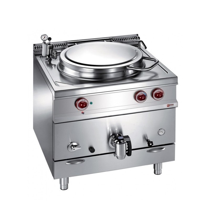 - Chauffage indirect, cuve à double enveloppe, remplissage d’eau par un robinet, un deuxième faisant office de trop-plein, permet de vérifier l'achèvement du remplissage . Contrôle de la pression de la double enveloppe par une soupape à 0,5 BAR, avec manomètre, et soupape de dépression.