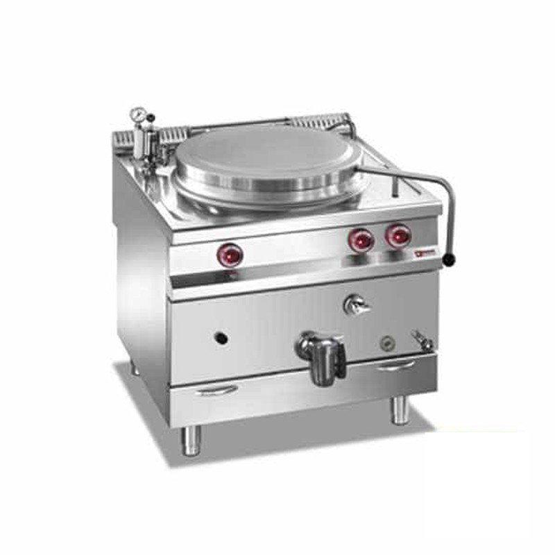 - Chauffage indirect, cuve à double enveloppe, remplissage d'eau par un robinet, un deuxième faisant office de trop-plein, permet de vérifier l'achèvement du remplissage. Contrôle de la pression de la double enveloppe par une soupape à 0.5 BAR, avec manomètre, et soupape de dépression.