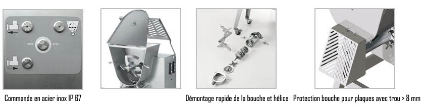 -Dotation standard : - Couteau et plaque diam. 6 auto-aiguisant inox - Outil pour l’extraction de l’hélice et des plaques - Manuel d’usage et d’entretien.
