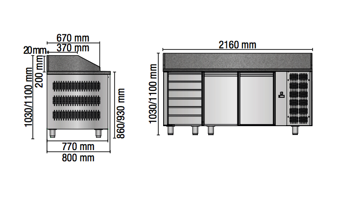-Le comptoir à pizza MID peut être combiné avec des vitrines réfrigérées pour les ingrédients de la pizza avec une unité indépendante