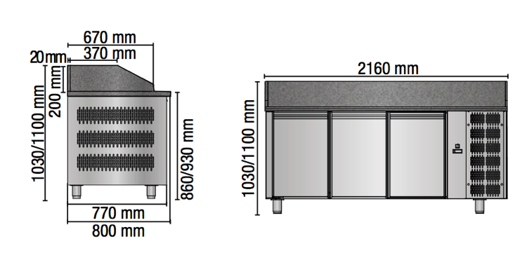 -Le comptoir à pizza MID peut être combiné avec des vitrines réfrigérées pour les ingrédients de la pizza avec une unité indépendante