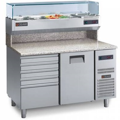 -Comptoir réfrigéré avec 1 porte et bloc tiroirs neutre 4+1 tiroirs