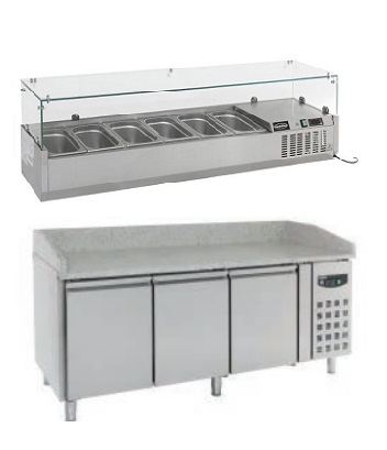 Meuble à pizza granite 3 portes avec vitrine COMBISTEEL