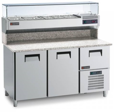 -Comptoir réfrigéré 2 portes avec tiroir neutre sur groupe de condensation pour no. 3 contenants en plastique