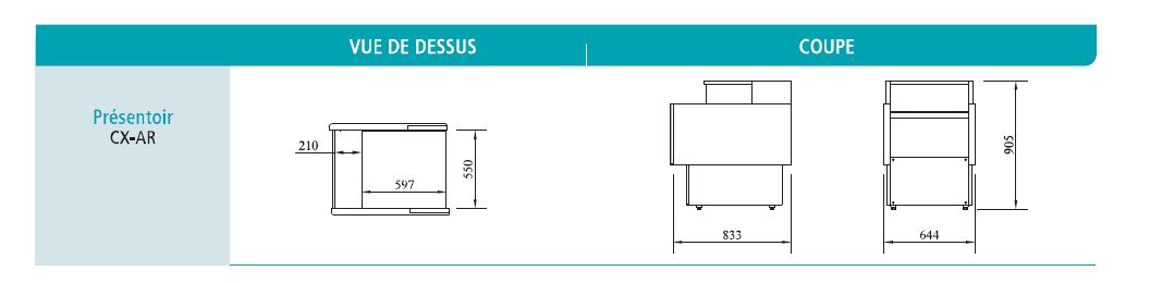 • vitrine non réfrigérée vitre bombée