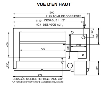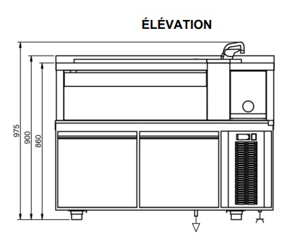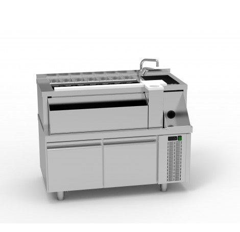 -Capacité de la cuve isolée : 2 zones pour la glace, 1 zone pour les bouteilles et 1 zone pour les bacs 7 GN 1/9-100 (plateaux non inclus dans le prix, voir kit optionnel KC-120)