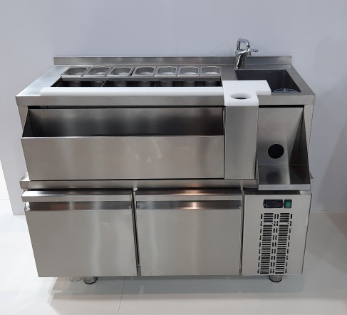 -2 tiroirs réfrigérés en acier inoxydable, amovibles sur des glissières télescopiques avec système de fermeture automatique