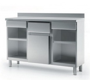 - Plan de travail en acier inoxydable AISI-30418/10, avec façade arrondie et 100 mm