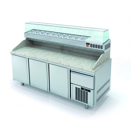 - 3 portes pleines + 1 tiroir neutre avec 3 bacs plastiques (600x400x70mm)