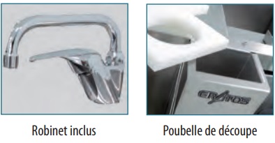 Intègre 2 planches de découpe en polyéthylène, extractibles pour le nettoyage, 1x (190x260x20mm) et 1x (730x60x20mm)