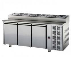 Le meuble à pizza style américain combine parfaitement fonctionnalité et esthétique. Conçu pour les pizzerias, il permet de stocker efficacement tous les ingrédients nécessaires à la fabrication de vos pizzas tout en ajoutant une touche de style à votre cuisine. Pratique, robuste, et conçu pour un usage professionnel, ce meuble garantit un accès facile aux ingrédients frais et un espace de travail bien organisé.