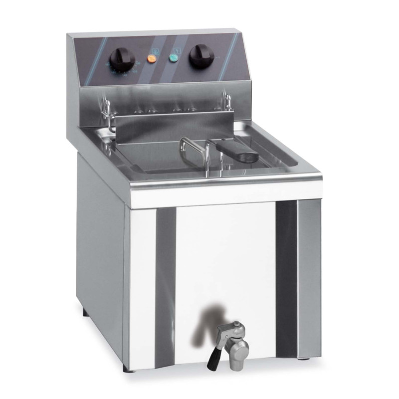 Les friteuses ont plan de travail en acier inoxydable. Gaz ou electriques. Les paniers sont en acier chromé, avec poignée athermique. Cuves avec zone froide pour accroitre la durée de vie de l'huile. Thermostats de régulation et thermostats de securité. Les friteuses gas ont bruleurs forte puissance avec flamme pilote et piezo.