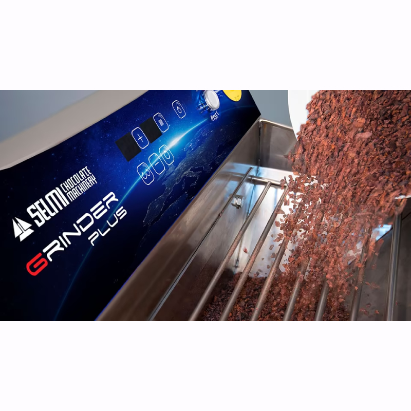Le Grinder Plus de SELMI est un moulin de haute performance conçu spécifiquement pour les chocolatiers artisanaux et les producteurs de chocolat bean-to-bar. Cet équipement de pointe permet de transformer les fèves de cacao torréfiées en une pâte de cacao fine et homogène, étape cruciale dans la production de chocolat de qualité supérieure.