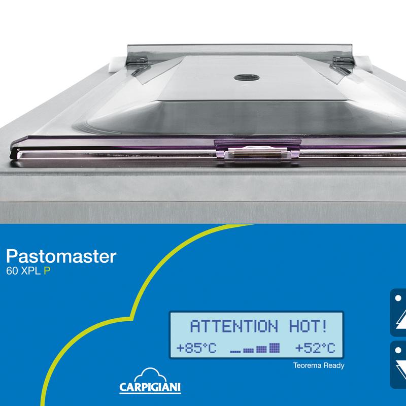 Les ingrédients sont mélangés et pasteurisés à l’interieur du bol de la pompe échangeur avec 'bain marie à sec”, brevet Carpigiani, qui garantit : Haute micronisation des globules de graisse à des dimensions fines de 2 à 5 microns pour obtenir des glaces plus onctueuses, Efficacité Supérieure parce que cela permet de réaliser même des quantités minimales sans risquer de brûler le mélange.