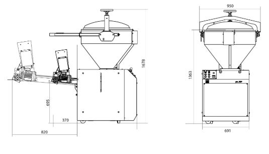 -D’une capacité de 160 kgs de pâte (minimum 60% d’hydratation pour un fonctionnement parfait), elle est disponible en 5 tailles de piston.
