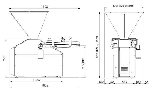 - Trémie revêtue de Téfl on, capacité en kg: 120 kg