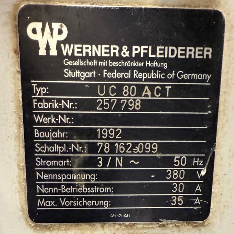Pétrin à spirale à Cuve sortante 120 Kg Farine Werner Pfleiderer
