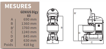Petrin a spirale GENIUS Digy 60 Kg VMI