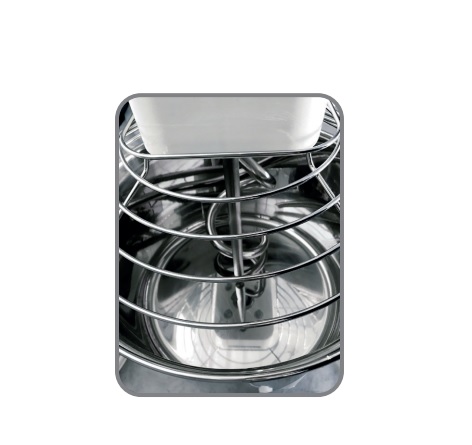 - Cuve, spirale, colonne centrale et grille de protection en acier inoxydable