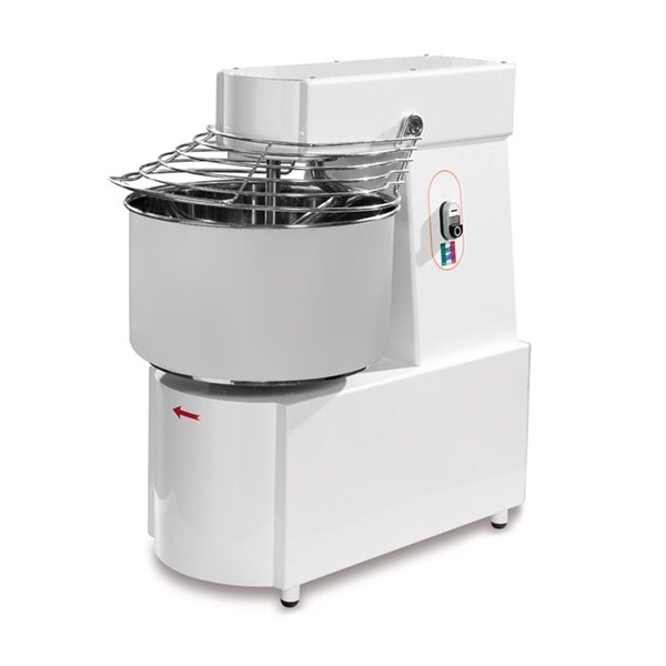Le pétrin à spirale est la machine idéale pour travailler des pâtes à pizzerias, pâtisseries, boulangeries et similaires. La forme particulière de la spirale permet en quelques minutes d'obtenir des pâtes parfaitement amalgamées. La cuve, la spirale, le coupe-pâte et la grille de protection sont en acier inox conformément aux normes sanitaires. Le pétrin à spirale a un système de transmission à chaîne et un motoréducteur à bain d'huile, garantissant robustesse dans le temps et silence. Les pétrins peuvent être dotés de : moteur monophasé, moteur triphasé, moteur triphasé à 2 vitesses et moteur avec voltages spéciaux. Toutes les machines sont garanties 1 an contre les défauts mécaniques de construction.