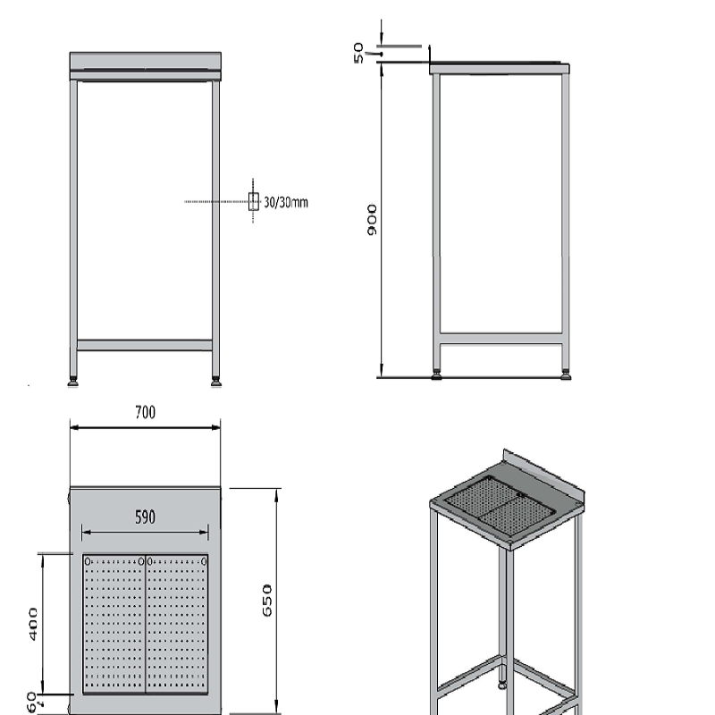 Dimensions Compactes : Avec des dimensions de 700 x 650 mm, ce plan de travail est parfait pour les espaces réduits tout en offrant une surface suffisante pour une utilisation professionnelle.