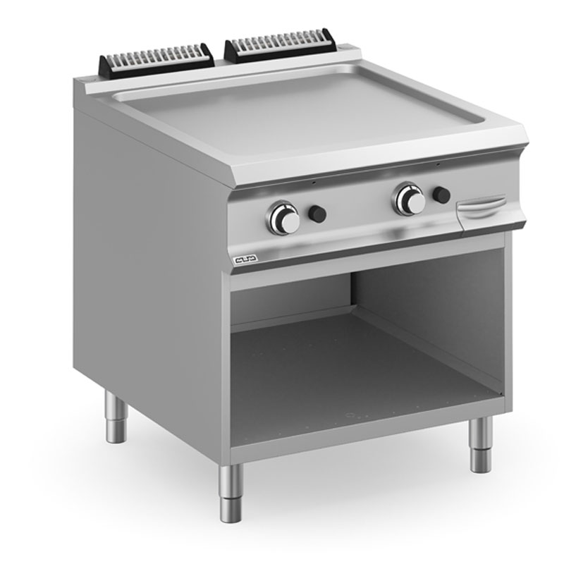La plaque 2 zones en acier à gaz MBM, modèle FTBG98AL, de la gamme DOMINA 900 PRO, est conçue pour offrir une surface de cuisson robuste et performante dans les cuisines professionnelles.