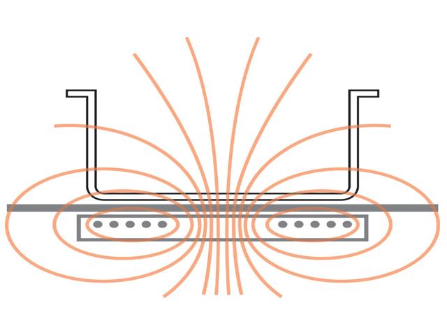 La chaleur est produite par un champ magnétique directement à l'intérieur du récipient, ce champs est créé électroniquement, il n'y a pas d'élément chauffant, ce qui lui confère une grande sécurité. La cuisson s'effectue pratiquement sans aucune perte de chaleur; elle est la technologie la plus économique, le retrait du récipient suffit à stopper la cuisson.