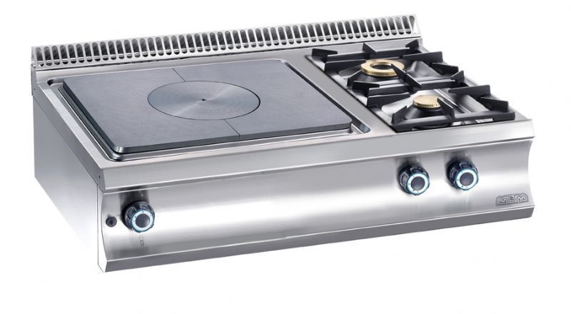- Dans la version électrique (ET77), la plaque de cuisson réalisée en acier carbone et possède une épaisseur de 15 mm. 4 zones de cuissons sont différenciées avec pour chacune dentre elles une puissance de chauffe de 2,25 kW et réglable indépendamment.