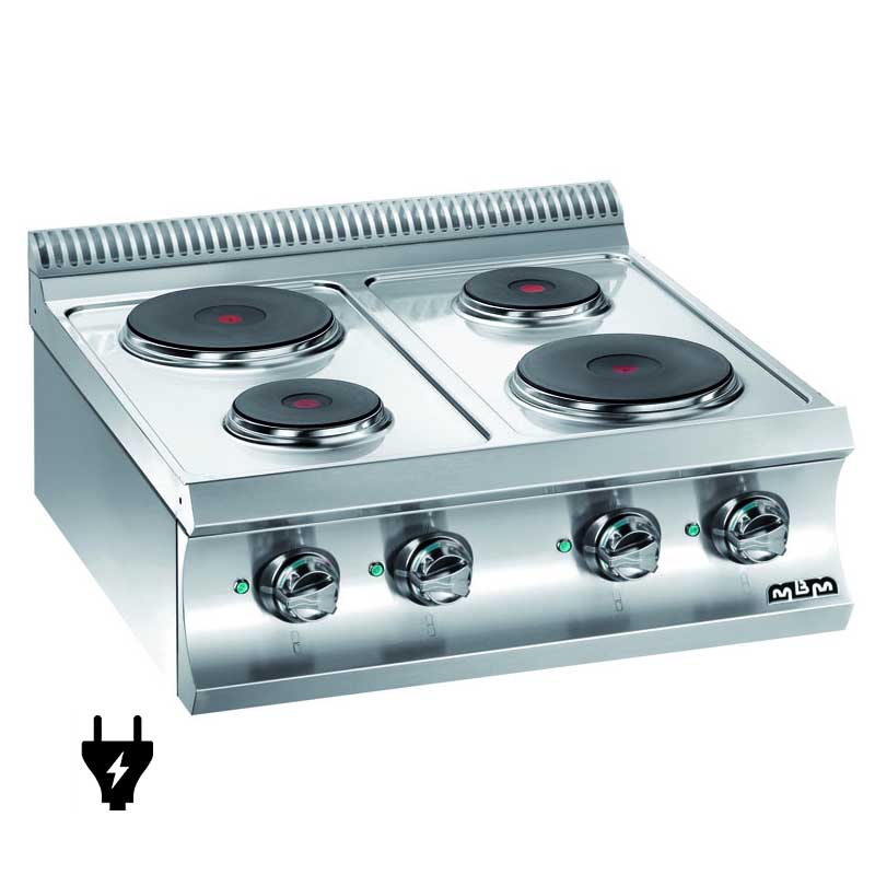 - Les plaques de cuisson (rondes avec diamètre 150/220 mm ou carrée avec dimension 300x300 mm) à chauffe rapide et équipées dun dispositif anti-surchauffe, offrent une puissance de 1,5 kW à 2,6 kW et 6 (+1) position de chauffe avec thermostat permettant doptimiser la puissance.