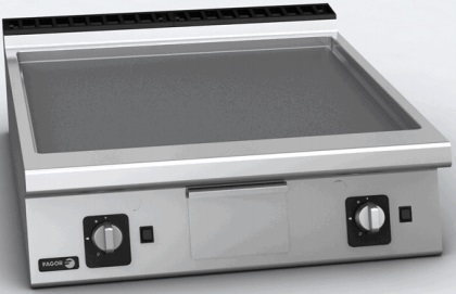 - Produit conçu en acier inox AISI 304, de 2 mm d’épaisseur, plan de travail embouti. Découpe laser, soudure et polissage robotisés facilitant l’assemblage des fonctions, le nettoyage et l’entretien. - Plaque de cuisson fabriquée en acier au carbone de 20 mm d’épaisseur, de mise en température rapide et puissance élevée. - Modèles avec grils lisses, striés ou mixtes (2/3 lisses + 1/3 à rayures). - Versions avec surface en chrome de 50 microns d’épaisseur pour les trois types de grils. - Chauffage électrique par résistances blindées en acier inoxydable; régulation par vanne entre 100 et 300 ºC. - Brûleurs à double tubulure (un brûleur pour les modèles de demi-module, deux brûleurs indépendants pour les modèles d’un module). - Contrôle de la température par robinet thermostatique (entre 100 et 300 °C) pour plaque chromée. - Vanne gaz sur les modèles plaques acier carbone. - Allumage des brûleurs avec train d’étincelles électronique. Ils disposent d’un tube d’accès pour l’allumage manuel. - Gaz: Module avec deux zones de chauffage indépendantes. - Thermostat de sécurité sur les modèles avec contrôle thermostatique. - Grande rapidité de réaction et récupération de la température sur le gril. - Les plaques sont intégrées dans le plan de travail embouti. - Plan de travail embouti avec arêtes arrondies pour une facilité de nettoyage. - Inclinaison de la plaque vers l’avant afin de faciliter la récupération des graisses et des liquides. - Tiroir de récupération d’une capacité allant jusqu’à 2 litres selon les modèles. - Protections latérales et arrières antiéclaboussures en option, facilement démontables. - Protecteur de cheminée en fonte émaillée haute température. - Accès aux composants de la partie avant. - Appareils avec protection de niveau IPX5 contre l'eau. Accessoires optionnels (voir page des accessoires à la fin du chapitre) - Raclette (*). - Protection anti-éclaboussure (en 3 pièces afin de faciliter le nettoyage). Voltage modèles électriques - 400 V 3+N. Consulter pour d'autres voltages.